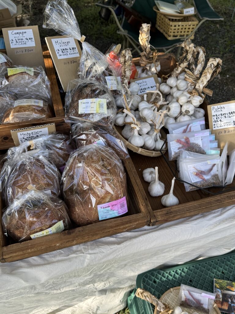 今回は収穫時期を迎えたベリーAをメインにパンとニンニクやピクルスのスパイスセットなどを並べました。